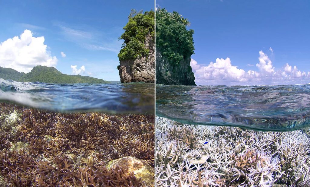 Branqueamento de corais causado por substâncias presentes nos protetores solares. Foto: Shock
